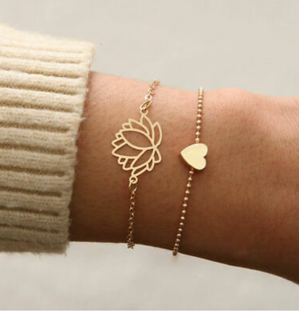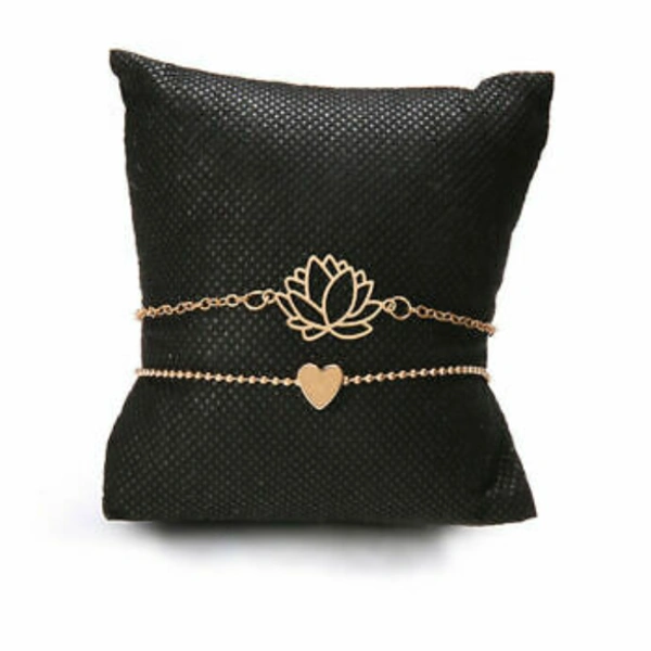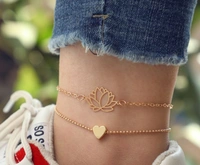 2 in 1 Anklet & Bracelet, set of two chain flower and heart
