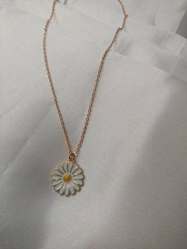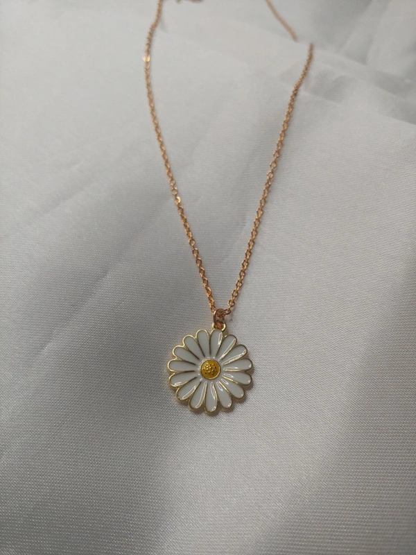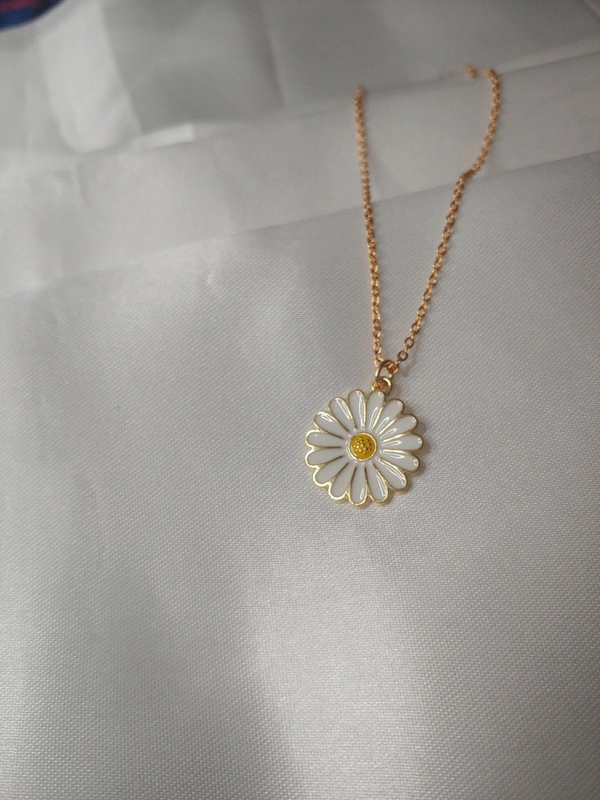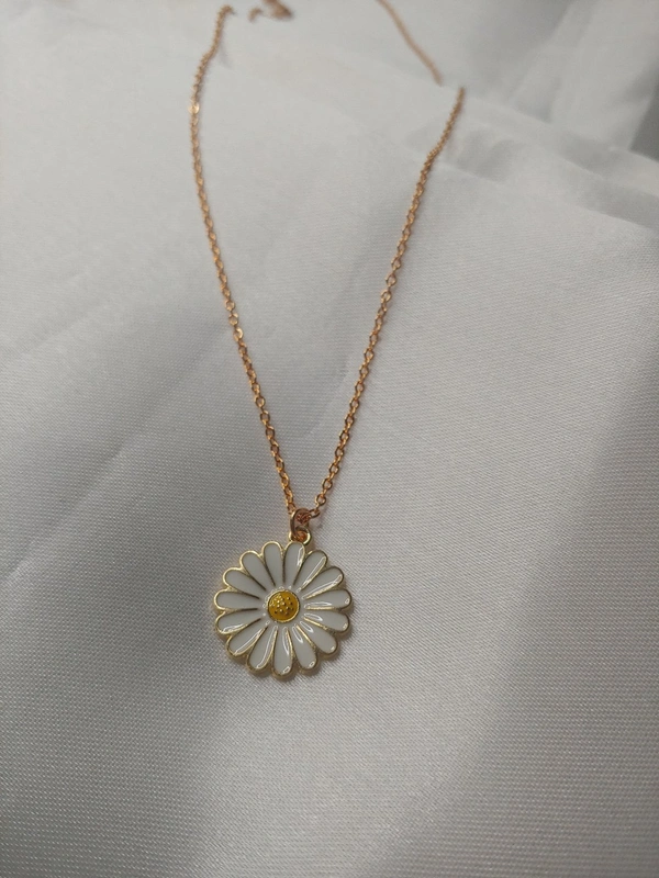 White Daisy Charm With Chain